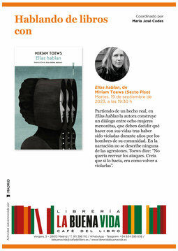 Partiendo de un hecho real, en Ellas Hablan la autora construye un diálogo entre ocho mujeres menonitas, que deben decidir qué hacer con sus vidas tras haber sido violadas durante años por los hombres de su comunidad. En la narración no se describe ninguna de las agresiones. Toews dice: “No quería recrear los ataques. Creía que si lo hacía, era como volver a violarlas”.