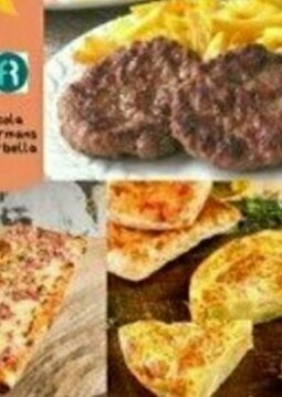 Hamburguesa de vedella a la planxa i patates fregides naturals amb ketchup i maionesa.