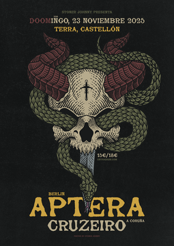 Originarias de Brasil, Italia, Bélgica y Estados Unidos, Aptera ha surgido de los mares para unir fuerzas en Berlín. Con una mezcla de sludge, doom, blues y metal clásico, combinados con un toque punk, Aptera es un grito gutural que te llevará a la destrucción.
