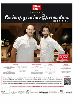 El menú degustación, preparado por los chefs Fernando Pérez Arellano y Javier Gardonio, se servirá por un precio de 59,50€ todo incluido en el restaurante Cantina Panzà ubicado en el Boutique Hotel Sant Jaume de Palma.
