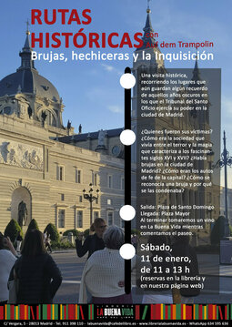 Una visita histórica recorriendo los lugares que aún guardan algún recuerdo de aquellos años oscuros en los que el Tribunal del Santo Oficio ejercía su poder en la ciudad de Madrid. ¿Quienes fueron sus víctimas? ¿Cómo era la sociedad que vivía entre el terror y la magia que caracteriza a los fascinantes siglos XVI y XVII? ¿Había brujas en la ciudad de Madrid? ¿Cómo eran los autos de fe de la capital?