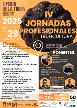Después de la experiencia tan positiva de las tres ediciones anteriores, en el 2025 volvemos a apostar por unas jornadas profesionales de truficultura como un punto de encuentro  de profesionales del sector y un referente a nivel nacional.