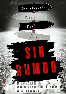 SIN RUMBO lo forman: Cris texidor toufik swar y Txar de la fuente que Tras conocerse en el centro cultural la tortuga y comenzar a ver qué tras varias actuaciones en micros abiertos y colaboraciones con la asociación el formato acústico en el que los tres participan de manera diversa con varios instrumentos y sus tres voces. Deciden dar el paso de preparar un proyecto más serio que se presentará por primera vez como no. en la tortuga. Donde se sienten como en casa. Lo que más define a Sin Rumbo es la variedad a la hora de no encasillarse en un genero musical ni en un solo idioma y su propia personalidad a la hora de interpretar sus covers armonizadas a dos o tres voces. Y sus temas propios que pensamos merece la pena tenerlos en cuenta. Os aseguramos que el día 28 de mayo los que os animéis a pasar por la tortuga. Pasaréis un entrañable rato. ¡NOS VEMOS EL 28!